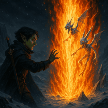 Nach kurzer Verhandlung bot er ein Portal zur zweiten Höllenebene im Austausch gegen die Rückführung eines Kindes mit gefährlicher Magie. Liora kündigte an, sich von der Gruppe zu trennen, um als Klerikerin an der Front zu helfen. Farron entschloss sich, zu bleiben.