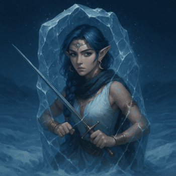 Unter Schneesturm und Hagel schleppte sich die erschöpfte Gruppe weiter durch die Eiswüste von Nazarr, dem fernen Schein der brennenden Berge entgegen. Ein Ice Devil mit Mephit stellte sich ihnen in den Weg und fiel – doch unmittelbar danach brach eine ganze Rotte von Teufeln über sie herein, angeführt vom Gletscherfürsten selbst. Ein einziger Befehl, gefrorenes Schweigen – und die Helden erstarrten in Eis.